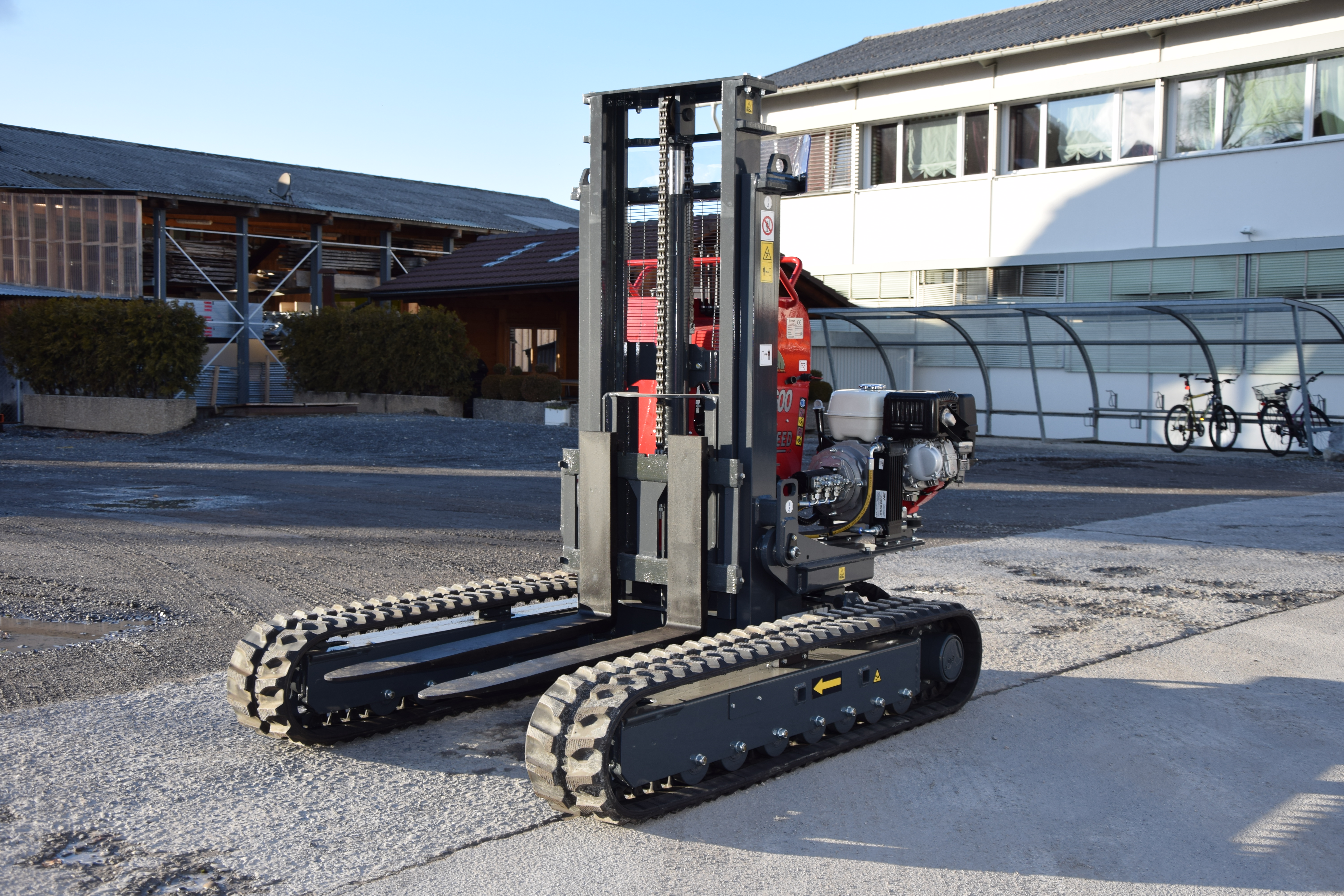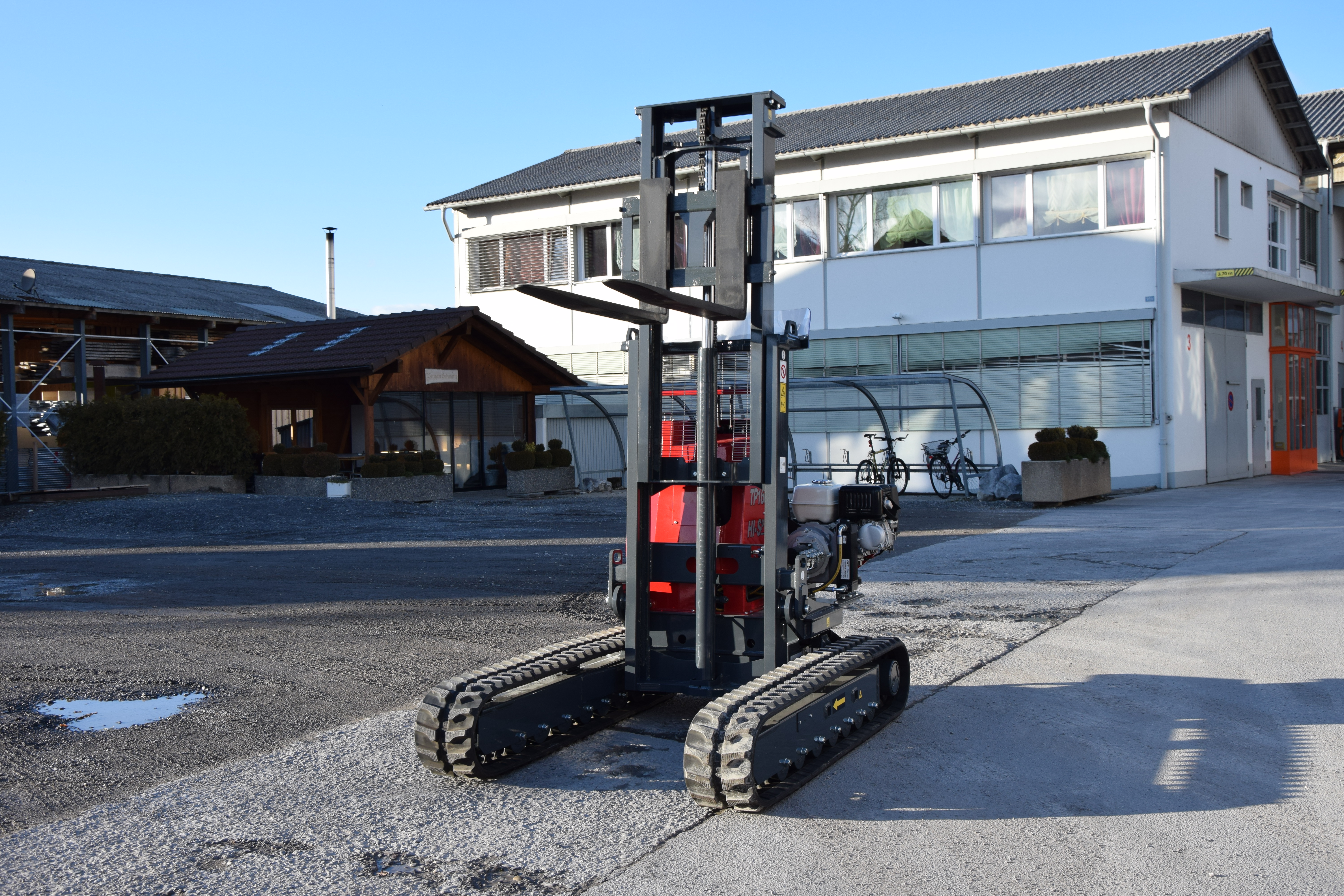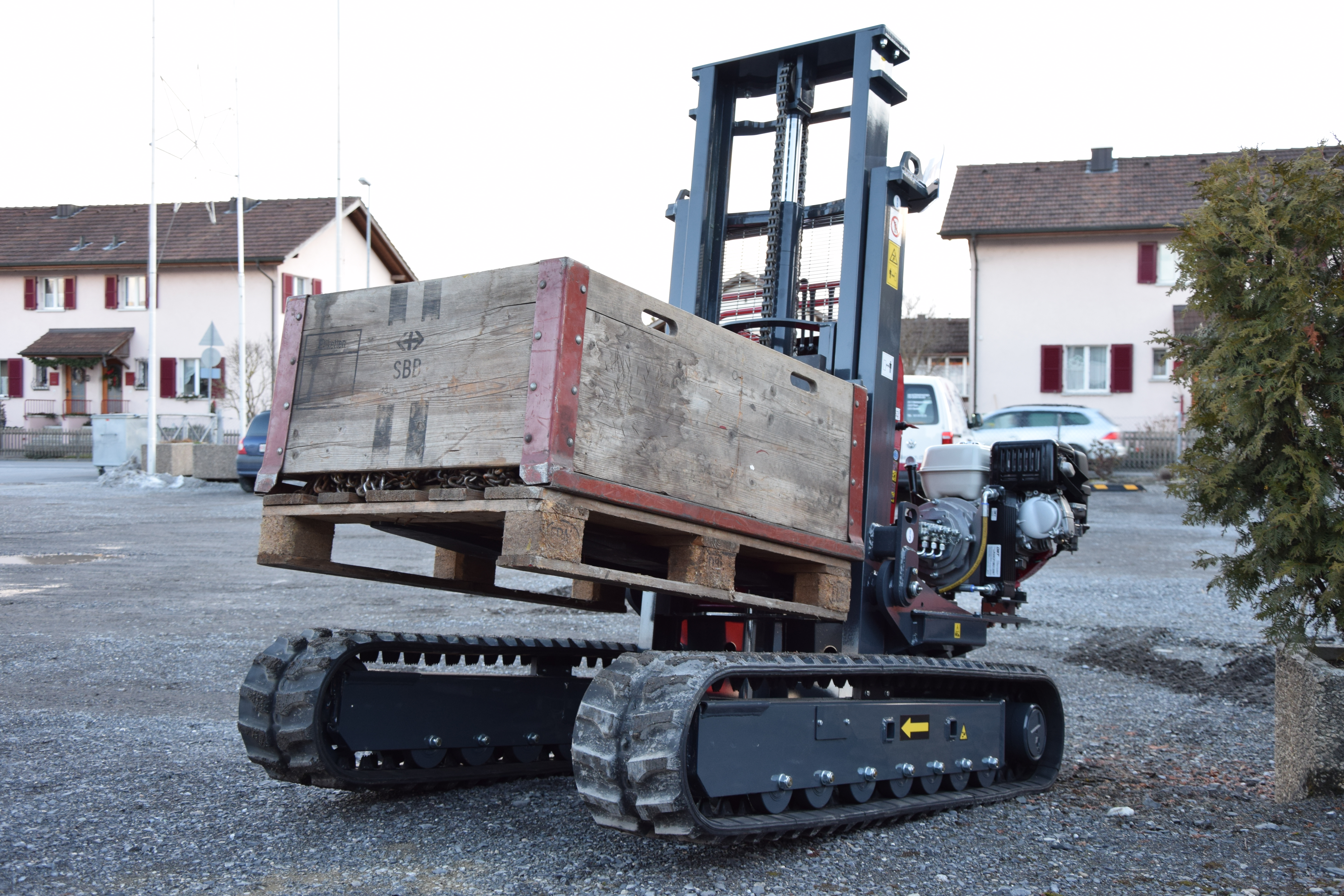 Raupengabelstapler mit 1‘600 kg Hubkraft - Der ideale Stapler für unwegsames Gelände.