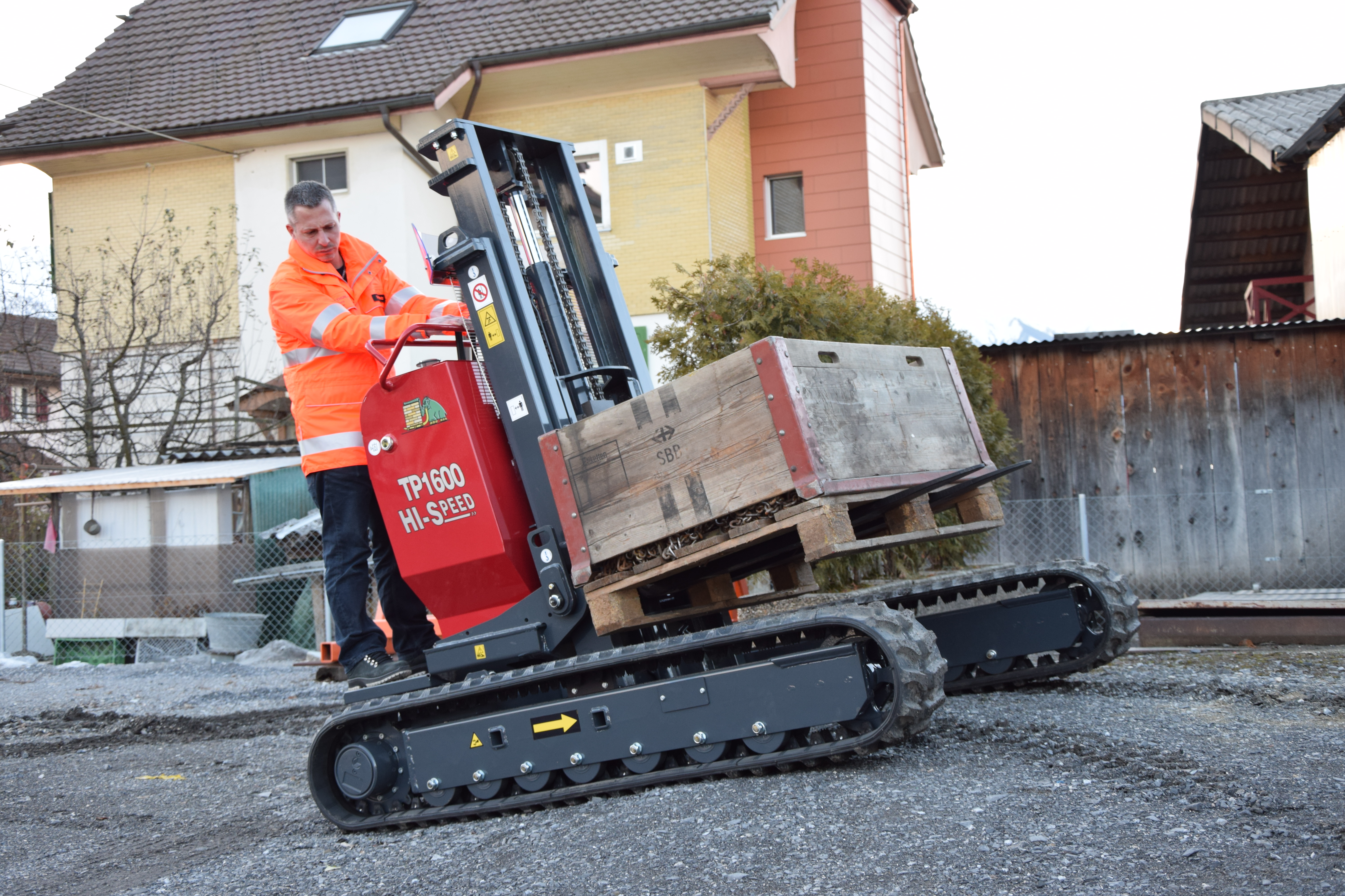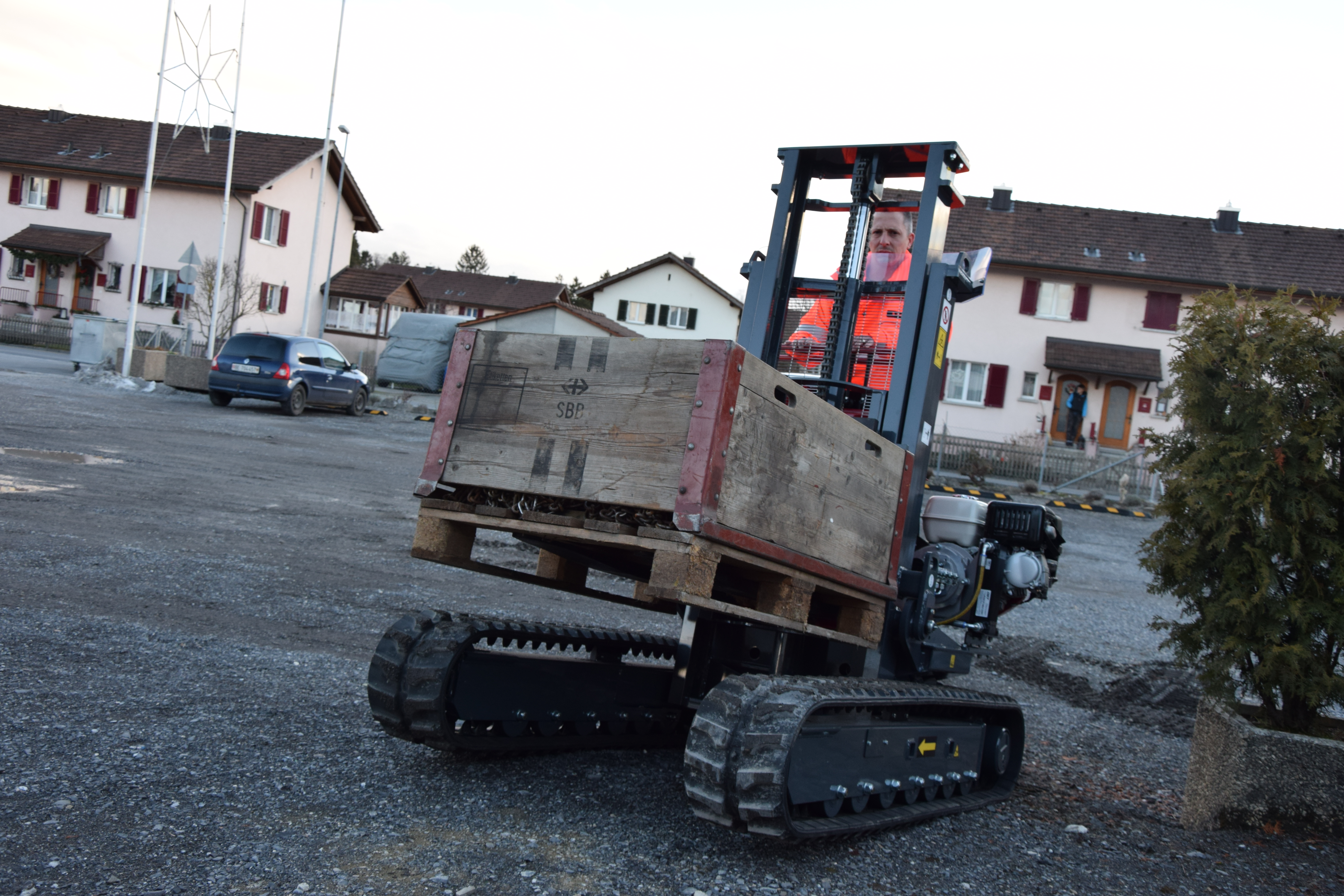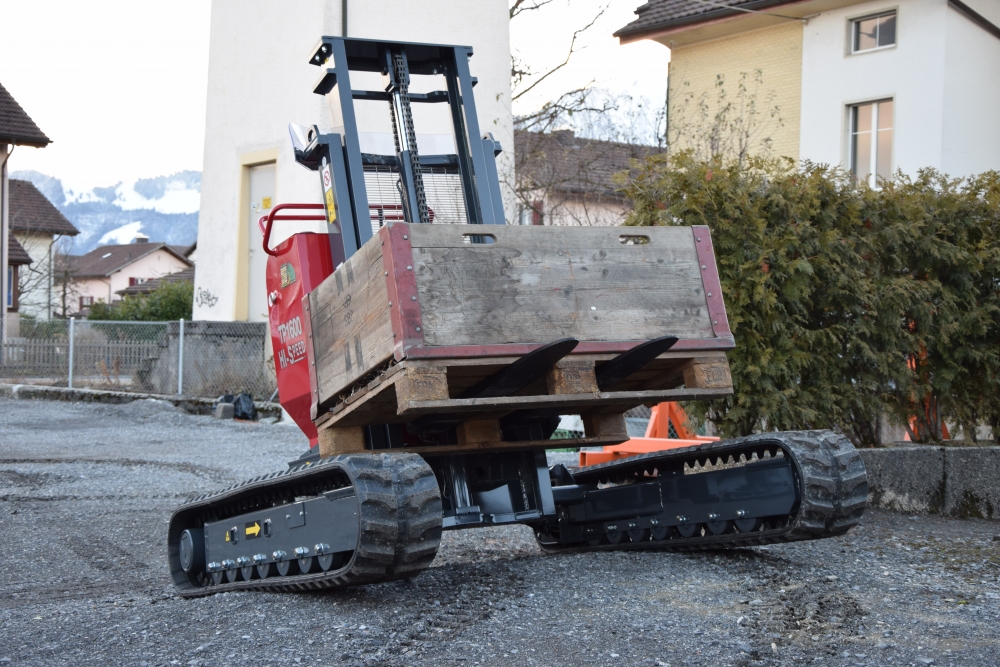 Raupengabelstapler mit 1‘600 kg Hubkraft - Der ideale Stapler für unwegsames Gelände.